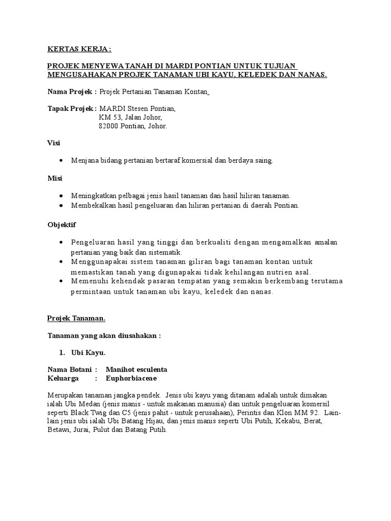 Kertas Kerja Projek Tanaman Kontan Pdf